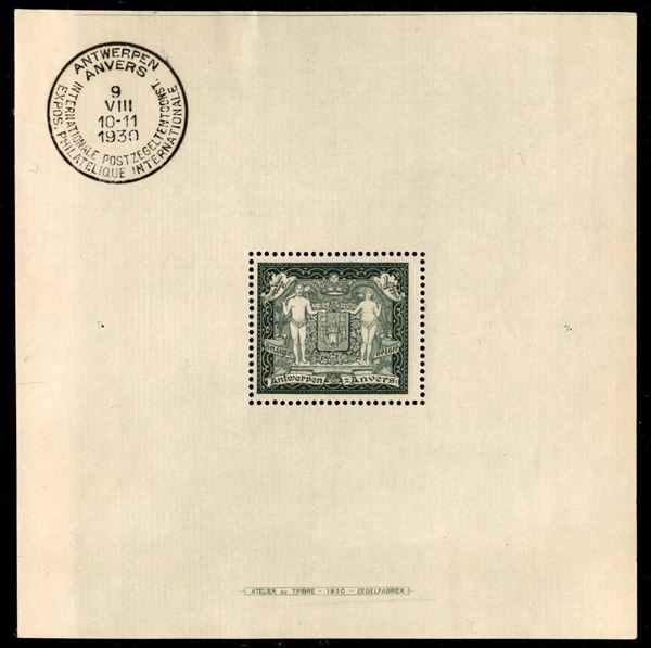 1930 - Foglietto Esposizione Filatelica di Anversa (BF2) con annullo speciale - gomma integra - cert. Echtheid