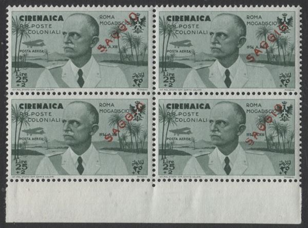 1934 Colonie Italiane - Cirenaica volo Roma Mogadiscio - serie di dieci valori in quartina soprastampati Saggio - non comune - (30/39)