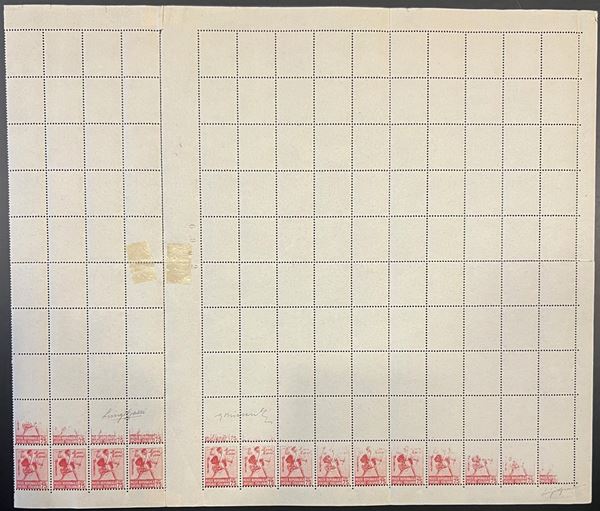 1944 - 75 cent Tamburino - blocco di 140 pezzi (dal foglio doppio) con interspazio - 14 strisce verticali con impronte parziali e 8 file verticali con parte di una sola impressione in basso - rarità - (508bc)