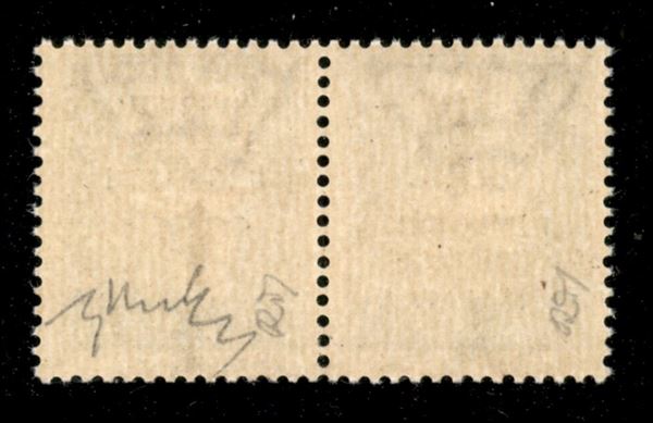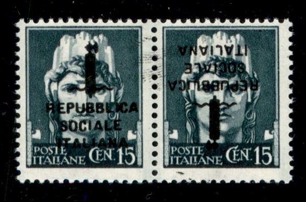 1944 - Saggi - 15 cent (P26b) - coppia orizzontale con soprastampa RSI in tete-beche - gomma integra - firmata Chiavarello