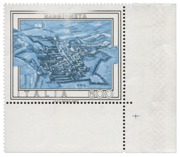 1990 Repubblica - 600 lire Propaganda Turistica Sabbioneta stampato solo in colore azzurro - francobollo con angolo di foglio - cert. Diena - (Bolaffi 2045 B)