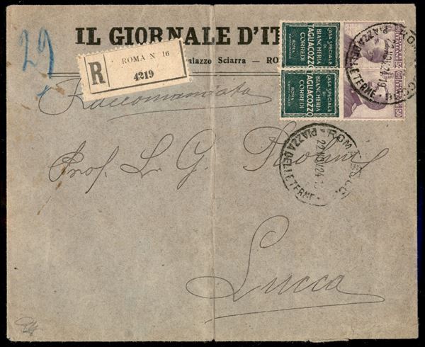 50 cent Tagliacozzo (17 cat.8400) due esemplari su raccomandata da Roma Succ.16 Piazza delle Terme 22 NOV.24 per Lucca - rara e splendida