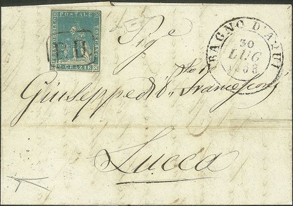 Bagno d'Aqui (doppio cerchio) + PD in cartella (P.ti 13) - 2 crazie (13) su lettera per Lucca del 30.7.58 - Raybaudi + cert. Bottacchi