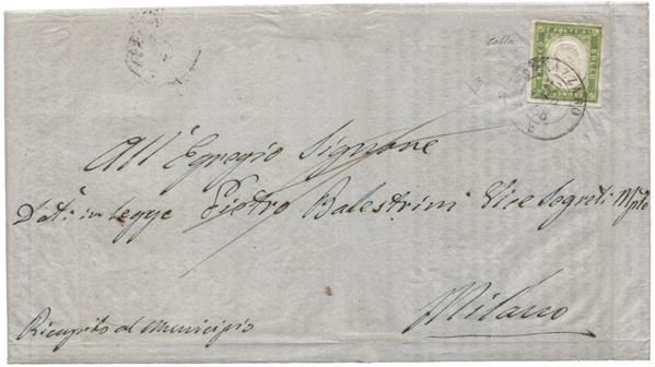 Circolare da Sannazzaro 27.6.58 per Milano con 5 cent vere giallo stampa difettosa - ottimi margini - isolato per l'estero - grande qualità - ED + Colla - (13Ah)