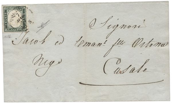 Circolare da Torino 7.5.57 con 5 cent verde mirto chiaro - ottimi margini - isolato - Sorani + Colla - (13Aa)