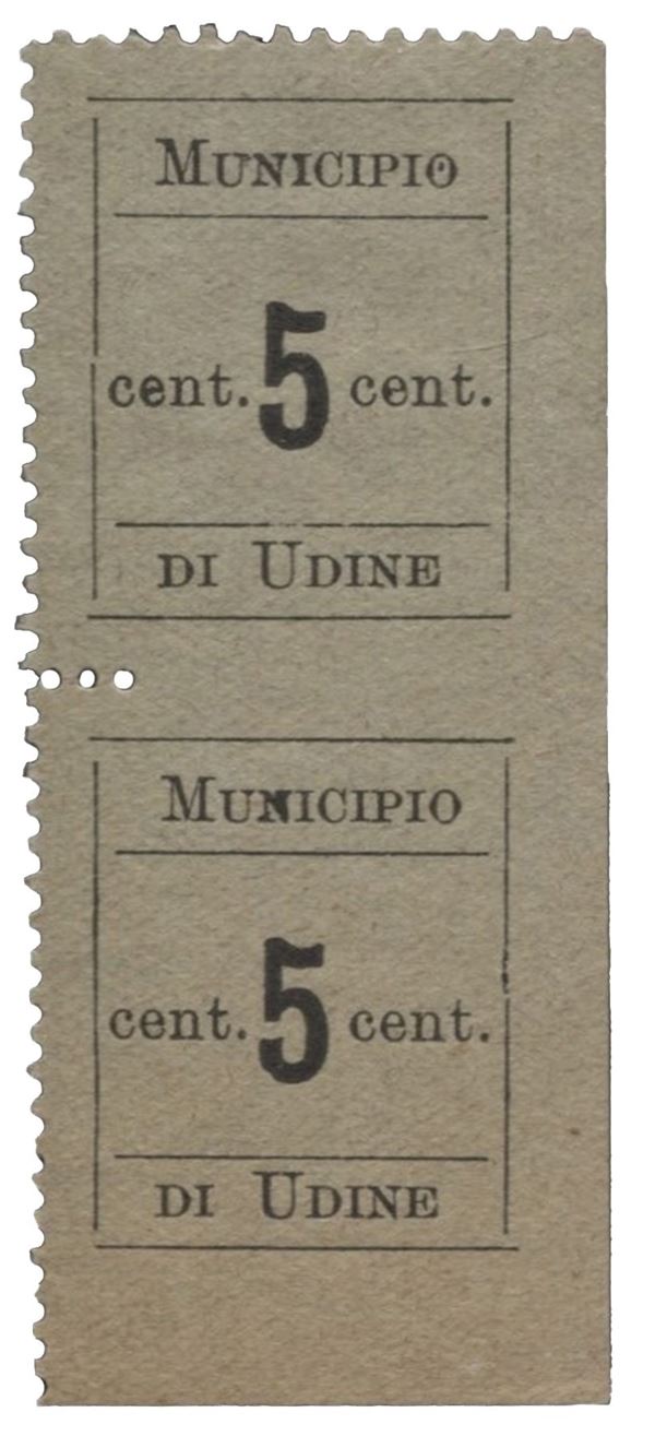 Coppia verticale 5 cent non dentellata al centro in basso e a destra rara - (1f)