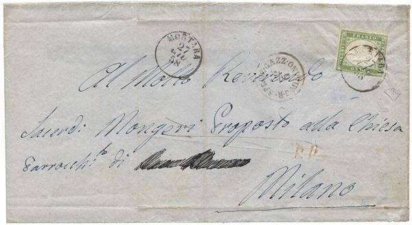 Fascetta per stampati da Mortara 27.6.58 per Milano affrancata con 5 cent verde giallo con buoni margini - annullo in CS senza ore (P.ti R1) - PEZZO UNICO - cert. ED - (13AD)