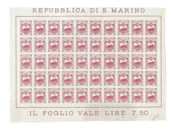 Foglio composto di 50 es. del 5 cent Pro Croce Rossa - Non Emesso - di pregio - (CEI 50Aa)