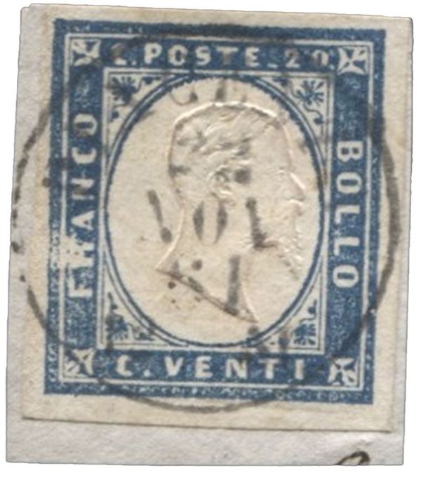 Frammento con 20 cent cobalto grigiastro annullato Piacenza 22.11.61 - buoni margini - cert. Sorani - (15Dd)
