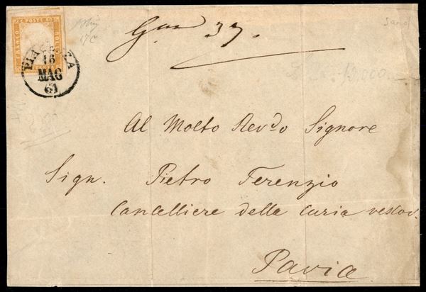 Fronte di lettera da Piacenza 16.5.61 per Pavia recante un 80 cent (17C) bene marginato - firma Oliva