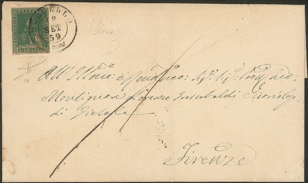 Governo Provvisorio - Reggello (doppio cerchio P.ti R3) su 4 crazie (14) su lettera per Firenze del 18.9.59 - molto bella - Diena + cert. Sorani