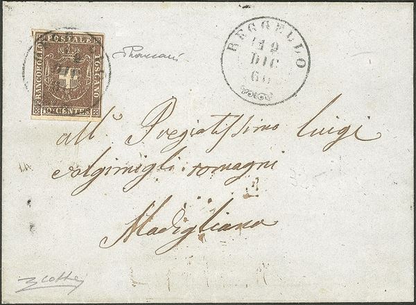Governo Provvisorio - Reggello (doppio cerchio medio azzurro P.ti R1) su 10 cent bruno (19) e ripetuto a lato su lettera per Modigliana del 19.12.60 - molto bella - Vaccari + cert. Colla