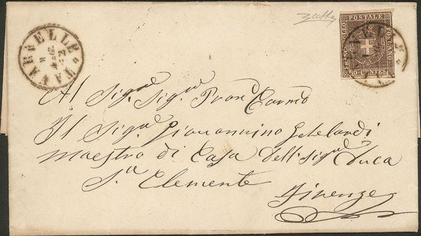 Governo Provvisorio - Tavarnelle (cerchio semplice medio P.ti R3) su 10 cent (19) in uso tollerato a validità scaduta (31.12.61) - lettera per Firenze del 1.5.62 - raro annullo su questa emissione - cert. Colla