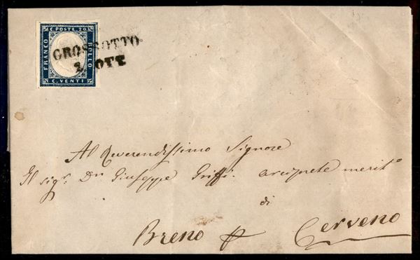 Grossotto (stampatello dritto - P.ti 10) - lettera del 2.10.1859 per Cerveno affrancata con 20 cent IV di Sardegna (15B)