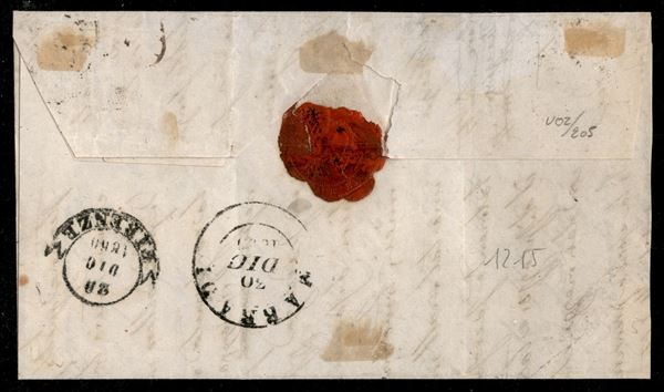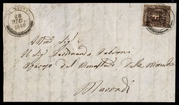 Lettera affrancata con 10 cent bruno (19) con annullo La Rotta 28 DIC.1860 (p.ti 12) per Marradi
