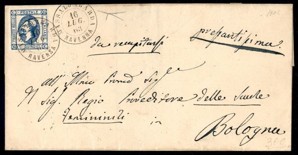 Lettera affrancata con 15 cent litografico (13e) con parziale doppia stampa da slittamento (tassello superiore) - da Massalombarda 16 LUG. 63 per Bologna - cert. Bottacchi