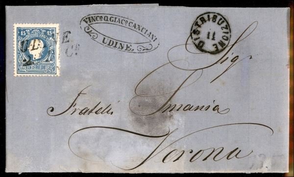 Lettera da Udine del 29.12.1862 per Verona affrancata con 15 cent (32) secondo tipo