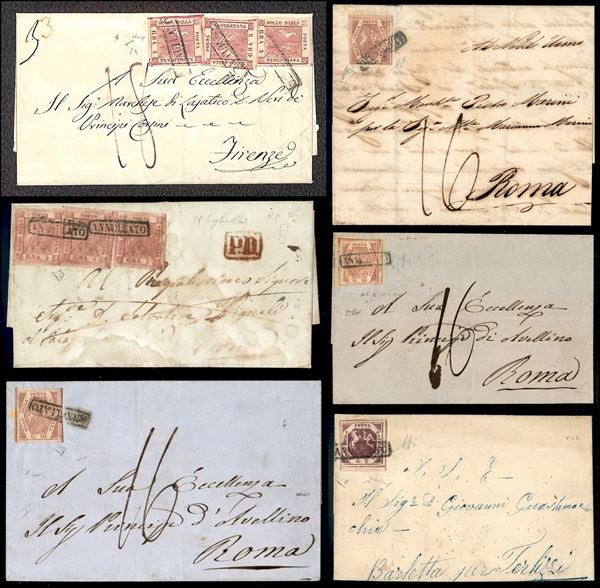 NAPOLI - 1857/1860 - Interessante insieme di 15 lettere pił 2 frammenti affrancati con il 2 grana 5 grana e 10 grana di tinte e tavole diverse - notati alcuni Falsi passati per posta - interessanti combinazioni e diversi certificati - elevatissimo valore di catalogo - merita esame