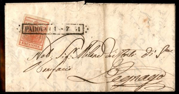 Padova (R51 - P.ti 7) - lettera del 1.7 per Legnago affrancata con 15 cent I tipo carta a mano (3)