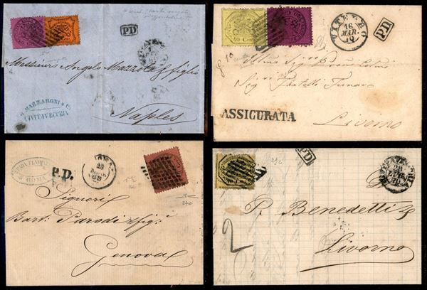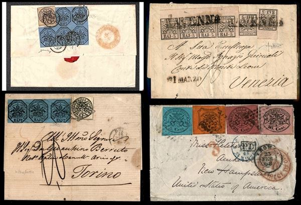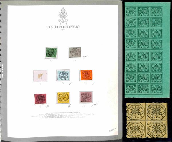 PONTIFICIO - 1852/1870 - Bellissimo insieme di valori nuovi e usati pił 20 lettere del periodo di discreta qualitą con belle affrancature - notato 1 scudo un blocco del 2 cent un 80 cent rosa lillaceo e diverse lettere con affrancature non comuni pił alcuni certificati - elevatissimo valore di catalogo - merita attento esame