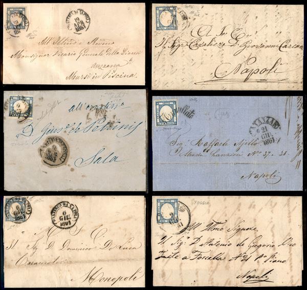 province napoletane - 1861/1862 - Collezione di 23 lettere di buona/discreta qualità con interessanti affrancature anche multiple e annullamenti del periodo - insieme interessante con tinte e annulli anche rari - considerevole valore di catalogo - merita esame