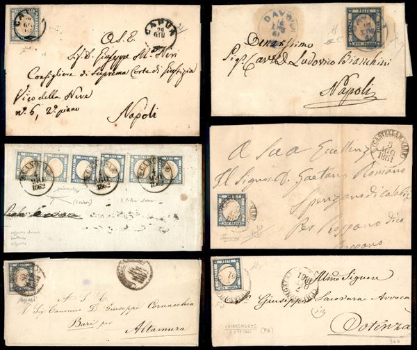 PROVINCE NAPOLETANE - 1861/1862 - Interessante insieme di 22 lettere pił 2 frontespizi con affrancature diverse del periodo - notate diverse varietą e belle combinazioni di affrancature anche rare - elevato valore di catalogo - merita attento esame