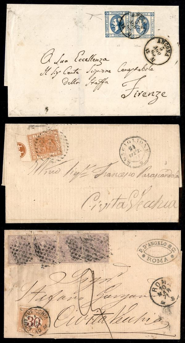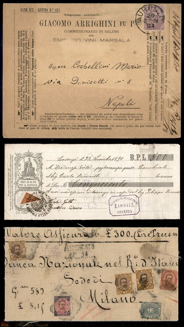 REGNO D'ITALIA - 1862/1890 - Bellissimo e interessante insieme di 10 lettere pił 1 listino pił 1 cambiale e 1 frammento con affrancature del periodo - notate affrancature miste varietą di pregio e bella quadricolore - alcuni certificati - elevatissimo valore di catalogo - merita attento esame