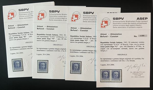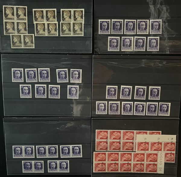 REPUBBLICA SOCIALE - 1943 - Insieme di 20 coppie pił 33 esemplari singoli di tre valori del periodo montati su cartoncini - notate diverse varietą di soprastampa non comuni - elevatissimo valore di catalogo - merita esame