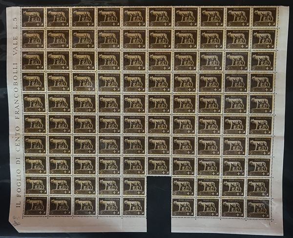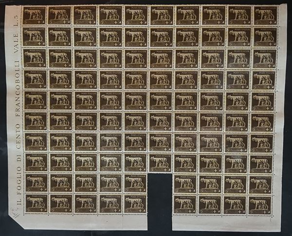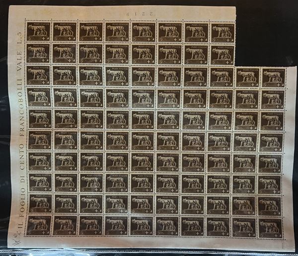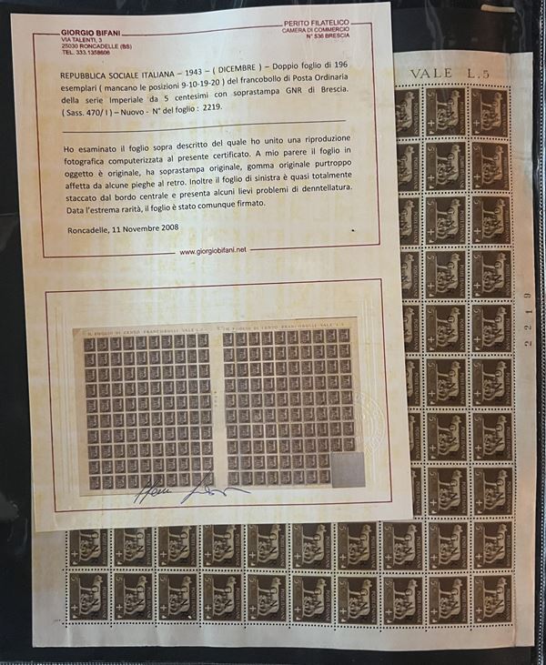 REPUBBLICA SOCIALE - 1943 - Insieme di 4 fogli con gli errori di composizione del 5 cent (470/Ia) - notate molte varietà e dei certificati - merita esame