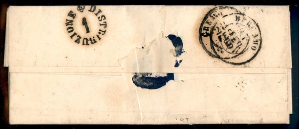 Romano (linee orizzontali e verticali - P.ti 7) - lettera del 22.6.1860 per Cremona affrancata con 20 cent IV di Sardegna (15B)
