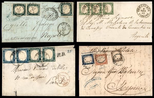 SARDEGNA - 1857/1863 - IV Emissione - Insieme di 17 lettere con affrancature del periodo di buona/discreta qualità - notati usi e combinazioni non comuni alcune tricolori e annulli e destinazioni interessanti - diversi certificati - elevato valore di catalogo - merita attento esame