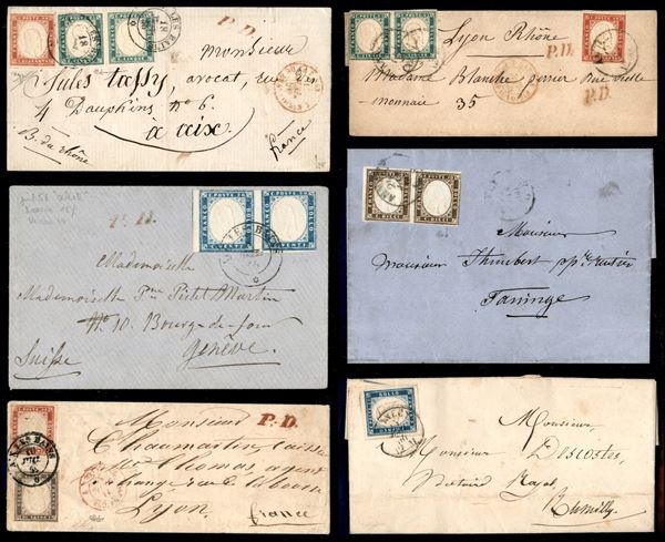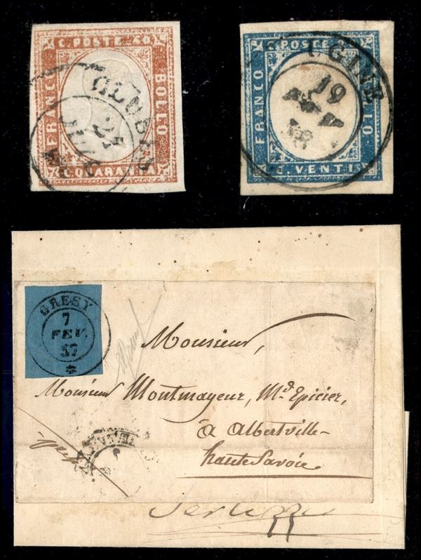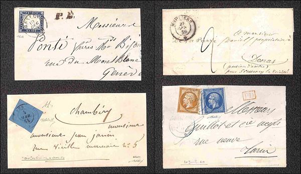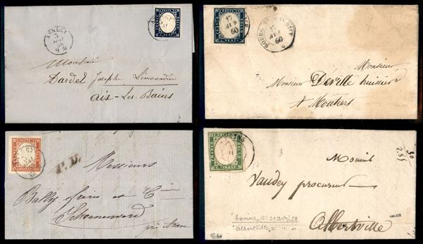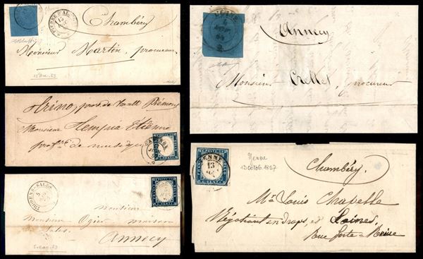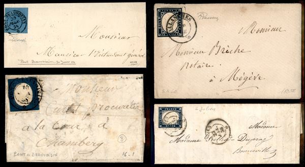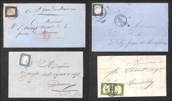 SARDEGNA - Annullamenti - 1853/1860 - Splendido insieme di 33 lettere pił 1 frammento e 2 esemplari usati con annulli di Savoia - pregiato insieme di ottima qualitą con diverse raritą - elevato valore di catalogo - merita attento esame