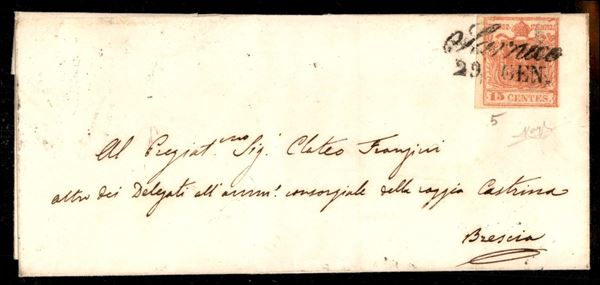 Sarnico (corsivo - P.ti 10) - lettera del 29.1 per Brescia affrancata con 15 cent secondo tipo carta a mano (5) - firma Raybaudi
