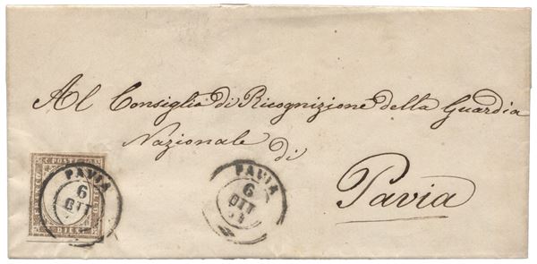 Splendida lettera da Pavia 6.10.61 affrancata con 10 cent bruno cioccolato chiaro - per cittą - rara tariffa - ottimi margini - (14Cea)