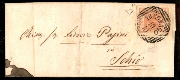 Tregnago (linee orizzontali e verticali - P.ti 7) - lettera del 16.10 per Schio affrancata con 15 cent terzo tipo carta a macchina (20)