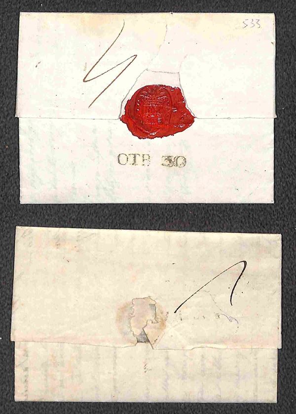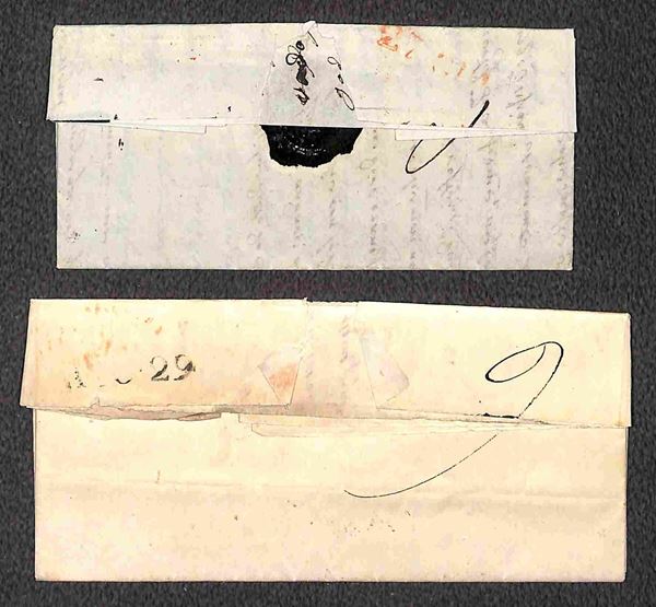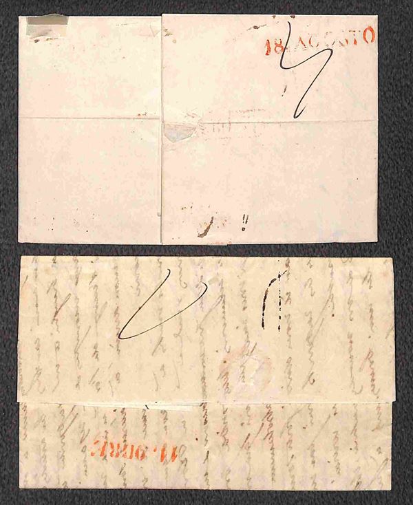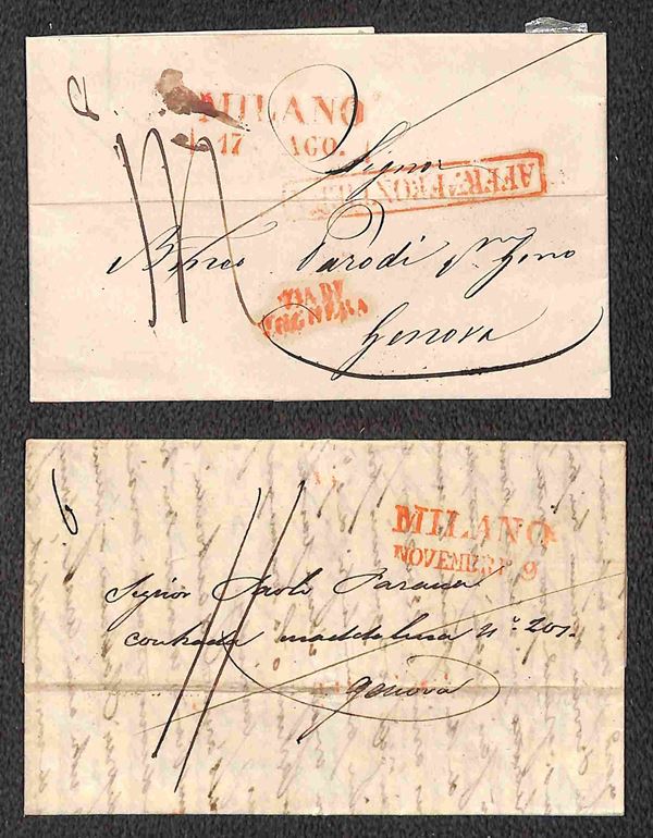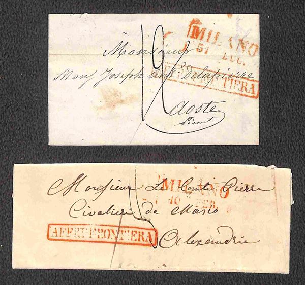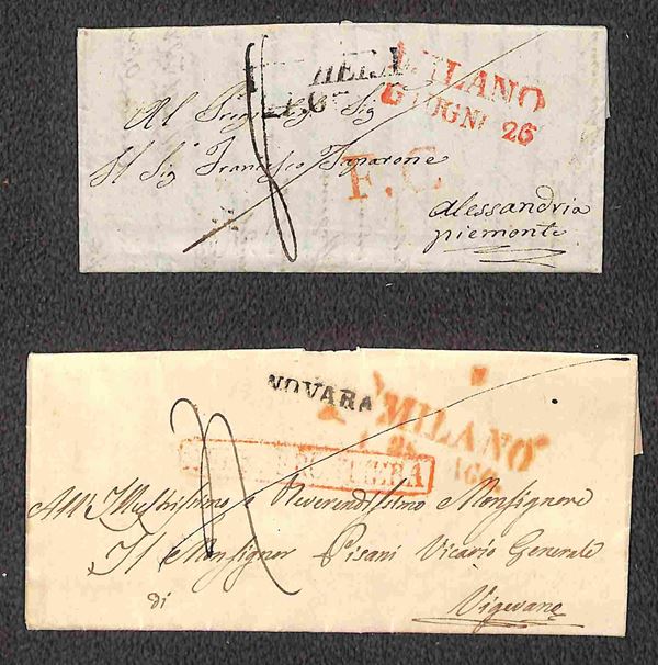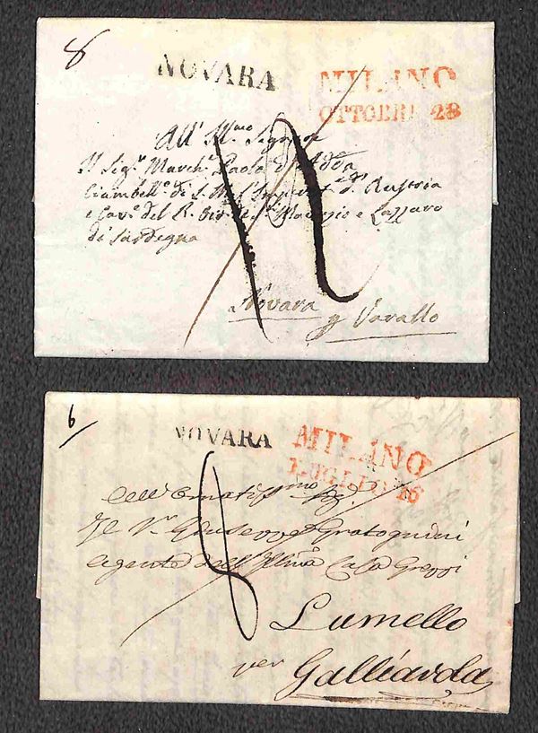 1833/1842 - Lotto di dieci lettere da Milano per il Regno di Sardegna con interessanti tassazioni ed annulli accessori