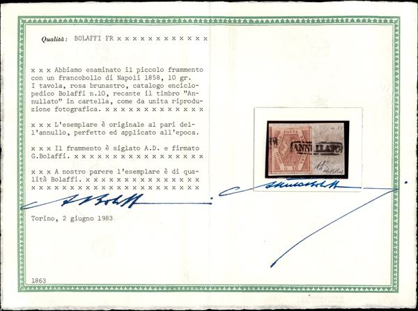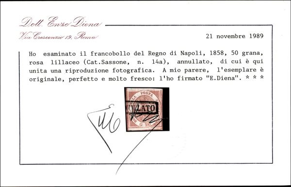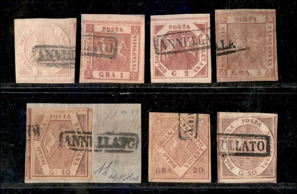 1858 - Serie tipo di 7 valori tutti di ottima qualità (1 - 4 - 7 - 9a - 10 - 12 - 14) usati - cert. Bolaffi per il 10 grana e E. Diena per il 50 grana