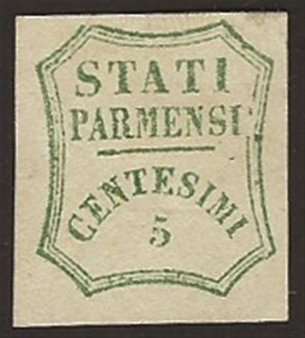 1859 - 5 cent verde azzurro (12) nuovo senza gomma - difetto di clichè sulla cornice destra - Raybaudi