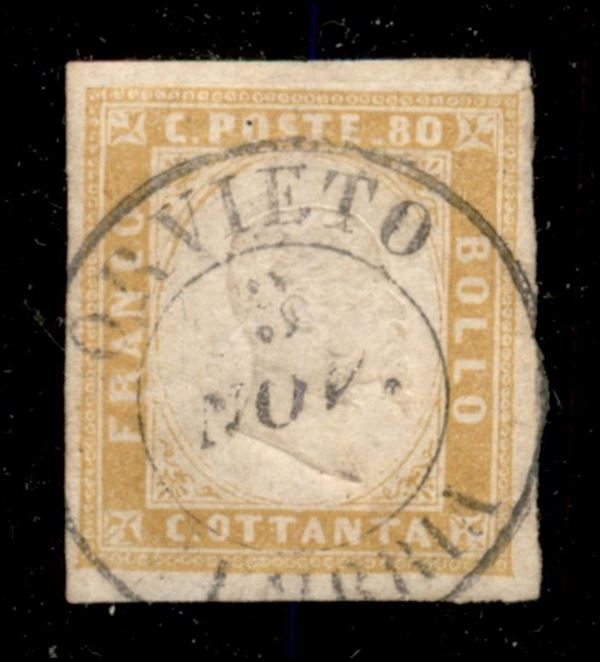 1860 - Effige 80 cent giallo arancio chiaro (17B) con annullo di Orvieto - splendido