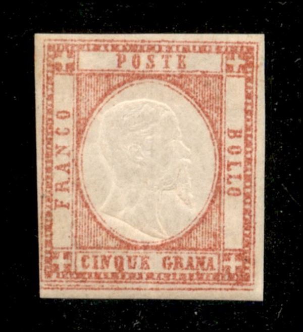 1861 - 5 grana vermiglio (21o/ka) - filetto ripetuto in basso (parziale + completo) - gomma integra - non catalogato