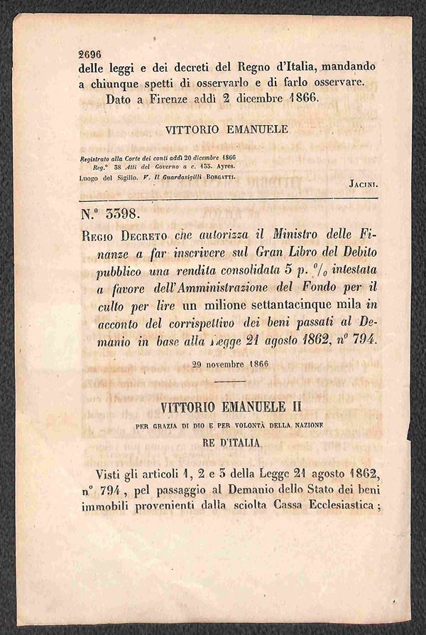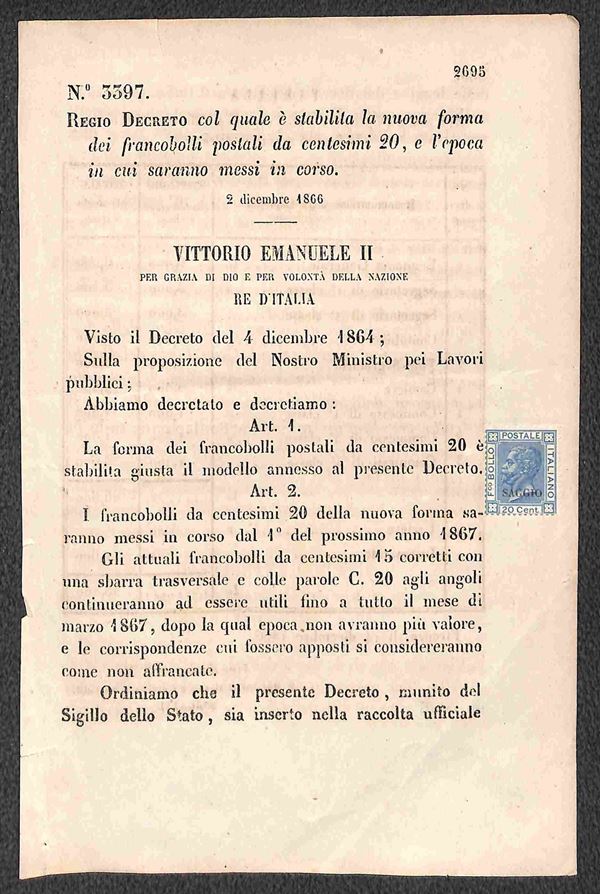 1863/1866 - Foglietto Menabrea + Decreto Bigola in buono stato
