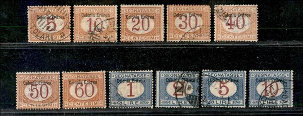 1903 - Segnatasse "Colonia Eritrea" in alto (1/11) - serie completa usata - splendida