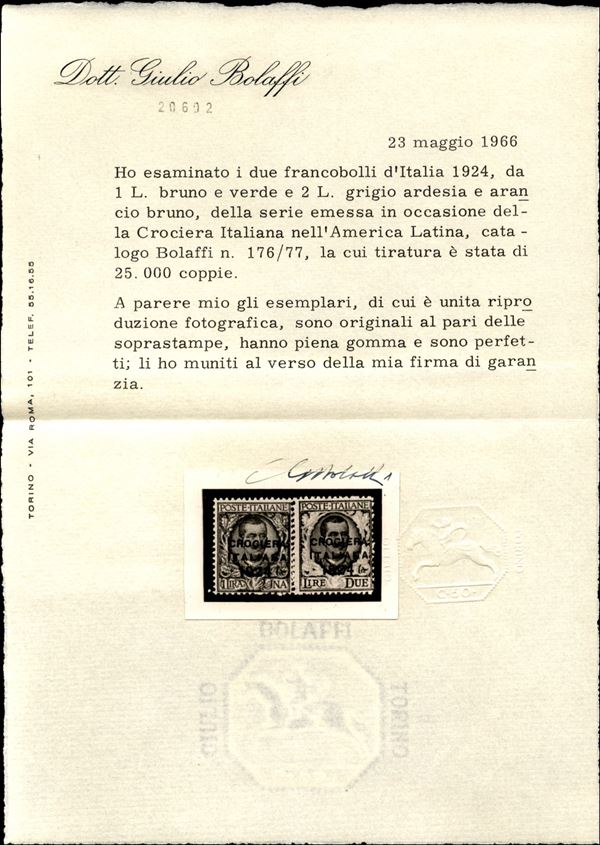 1924 - Crociera Italiana nell'America Latina(162/168) - serie completa gomma integra - cert. Bolaffi