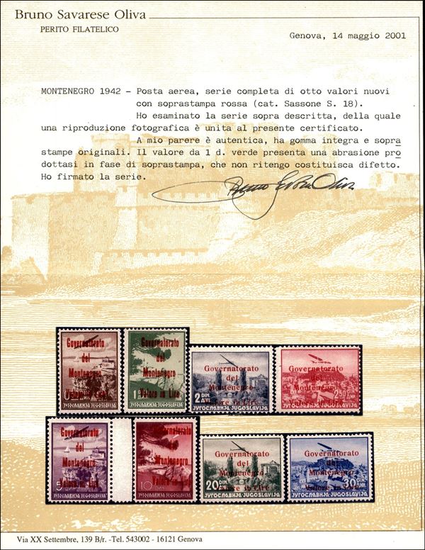 1942 - Posta Aerea - serie completa - 8 valori (18/25) gomma integra - Raybaudi + cert. Savarese