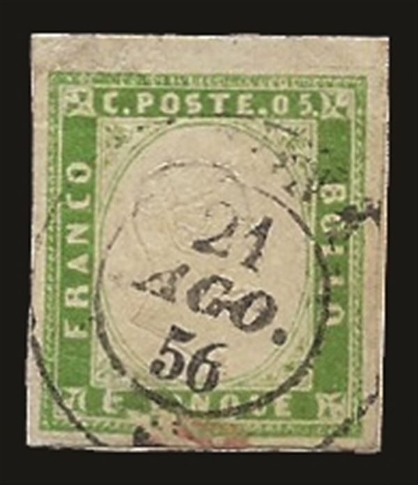 5 cent verde giallo (13a) usato - minima imperfezione ma di ottimo aspetto e bordo di foglio in alto - cert. Bottacchi