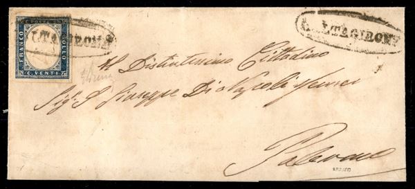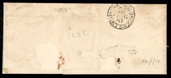 Bollo ovale borbonico Caltagirone (Sassone P.ti 12) su lettera diretta a Palermo giunta a destinazione il 30 maggio 1861 e affrancata con Sardegna 20 cent celeste grigiastro - rari gli ovali su 20 centesimi - firma per esteso Emilio Diena
