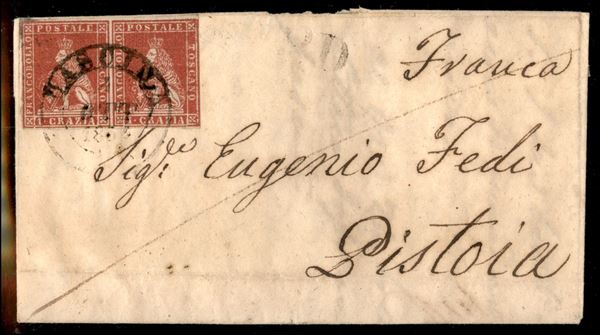 Cascina 4 ott 1854 - Coppia orizzontale del 1 crazia (4) su lettera per Pistoia