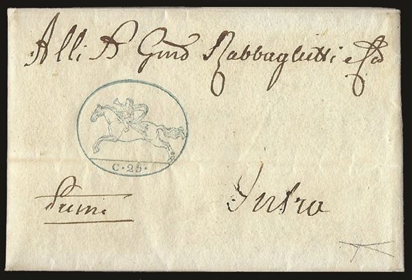 Cavallino 25 cent azzurro (2) da Novara a Intra - impercettibile piega - comunque di grande qualità