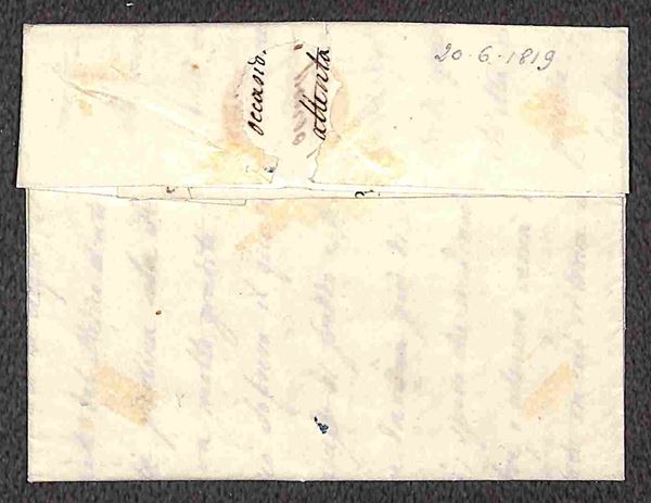 Cavallino stampa in azzurro c. 25 fresco e senza piega usato da Canale 20 giugno 1819 per Torino - G. Bolaffi