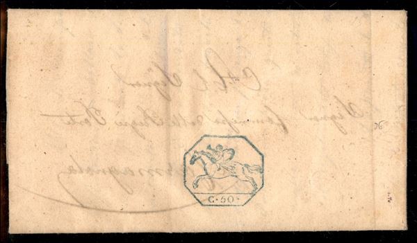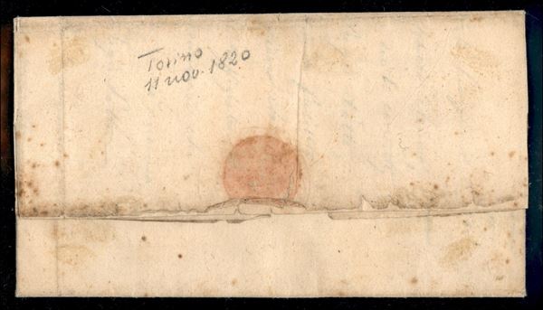 Cavallino stampa in azzurro c. 50 in uso amministrativo - lettera del 11 novembre 1820 con bollo corsivo in rosso delle Poste di Torino su carta intestata Amministrazione delle Regie Poste diretta a Camagnola